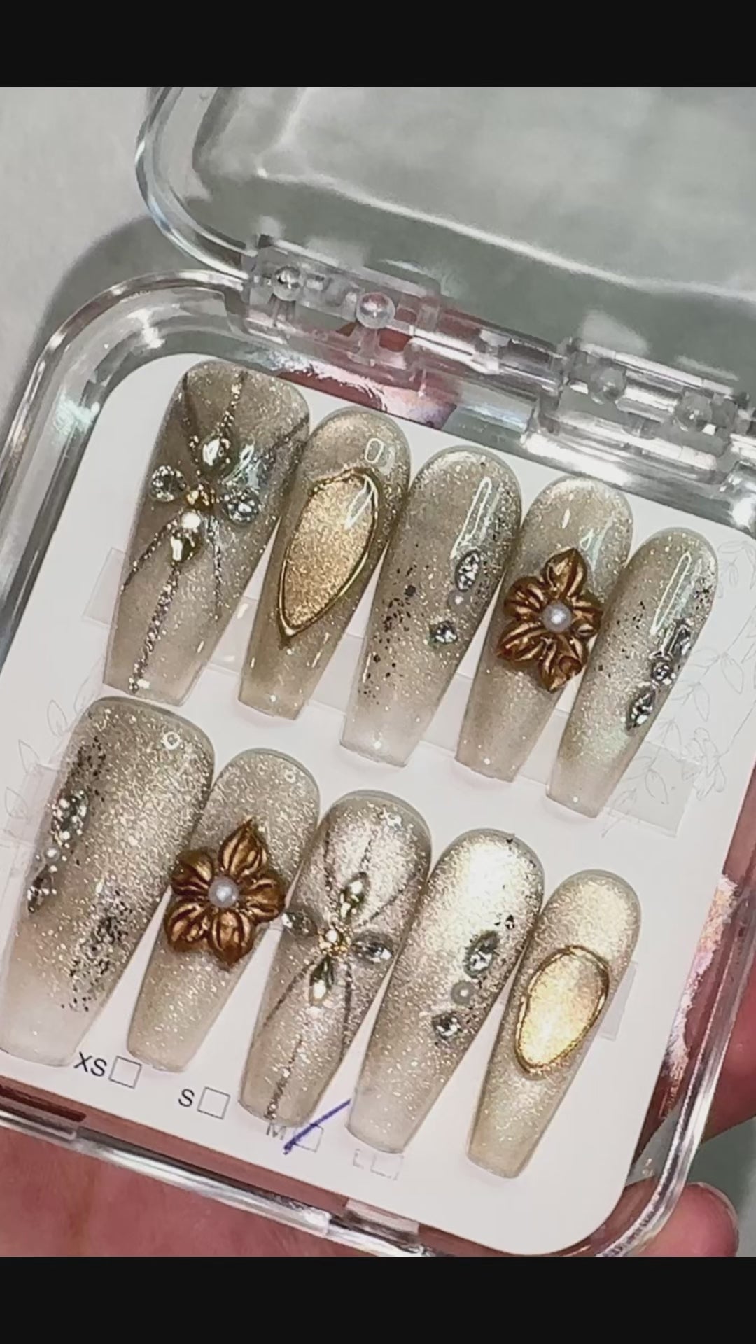 • 1 full set of handcrafted nail tips for both hands