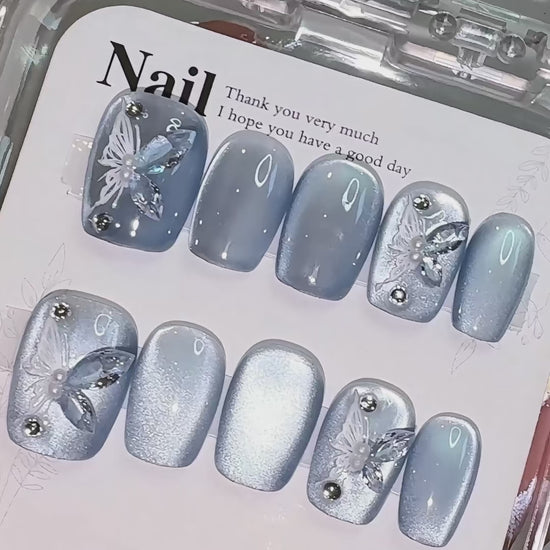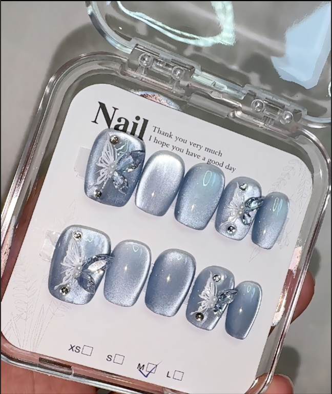 Frosted Bloom blends a soft mist-blue base with a subtle, icy shimmer, creating a calm and elegant winter-inspired look. Sculpted floral accents and tiny silver crystals add dimension without overwhelming the clean, cool-toned finish. The result is a refined design that feels delicate yet modern — perfect for everyday wear, seasonal gatherings or moments when you want something light, polished and quietly expressive. Comfortable to wear and easy to apply, this set brings a gentle winter glow that stays sophisticated and effortlessly wearable.