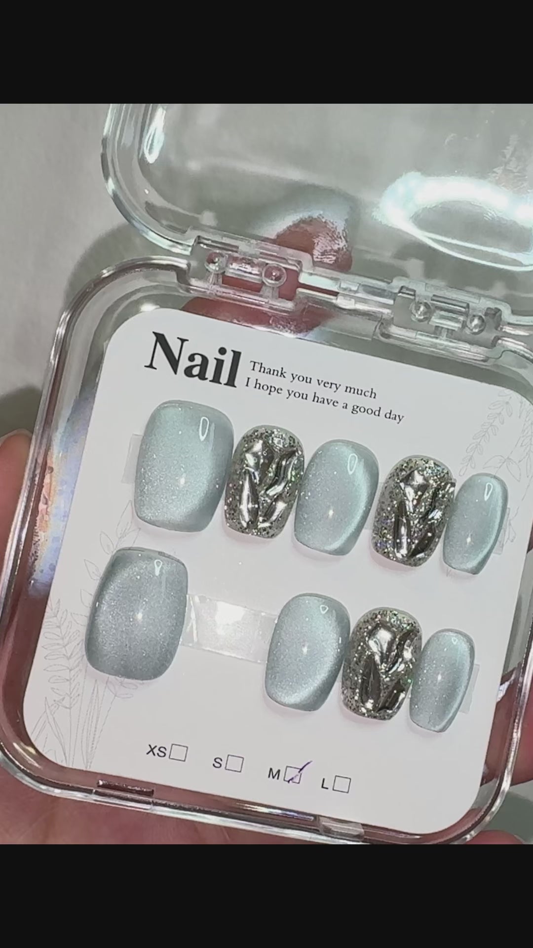 • 1 full set of handcrafted nail tips for both hands