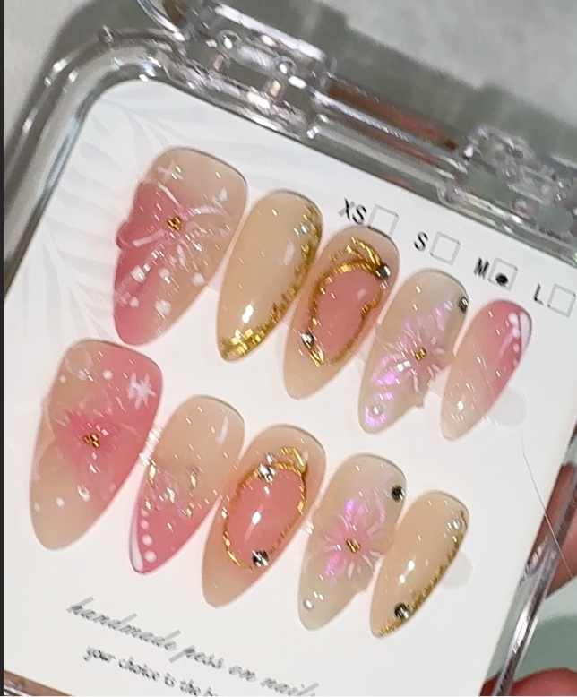 Premium ABS nail tips with a natural curve and a lightweight, comfortable finish. Durable, flexible, and designed for everyday wear. Each set is fully handcrafted, offering a level of detail and finish that machine-made nails cannot replicate.
