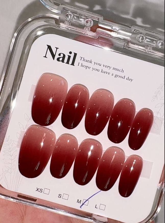 Plum Dusk features a smooth gradient that moves from a deep plum-red to a soft, warm rose tone, creating a calm and elegant finish. The glossy surface adds a refined touch, keeping the look simple yet polished — ideal for everyday wear, office settings or moments when you want a hint of colour without anything bold. The gentle transition in shades gives the nails a soft-focus effect that feels modern, understated and effortlessly feminine. Comfortable to wear and easy to apply, this set offers a timeless red that stays wearable across seasons and styles.