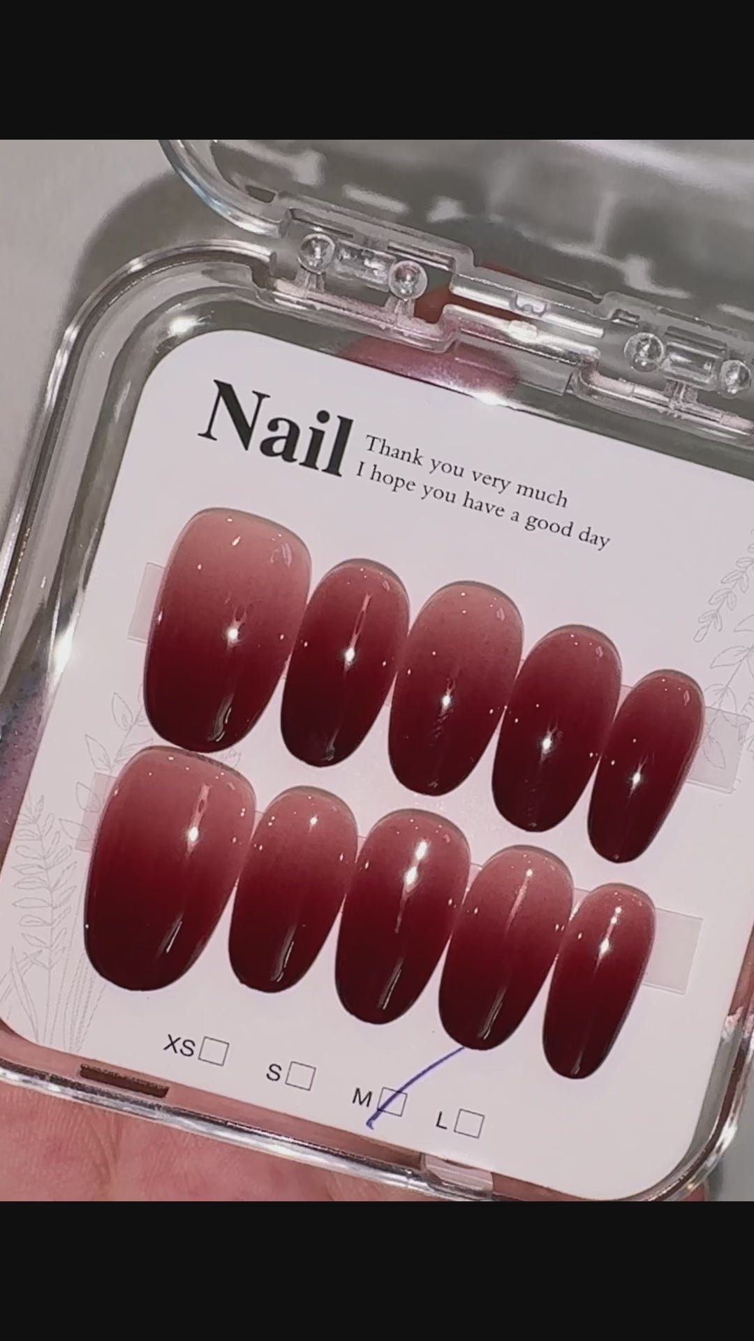 • 1 full set of handcrafted nail tips for both hands