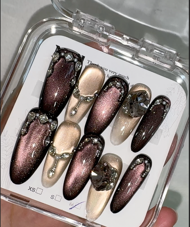 Premium ABS nail tips with a natural curve and a lightweight, comfortable finish. Durable, flexible, and designed for everyday wear. Each set is fully handcrafted, offering a level of detail and finish that machine-made nails cannot replicate.