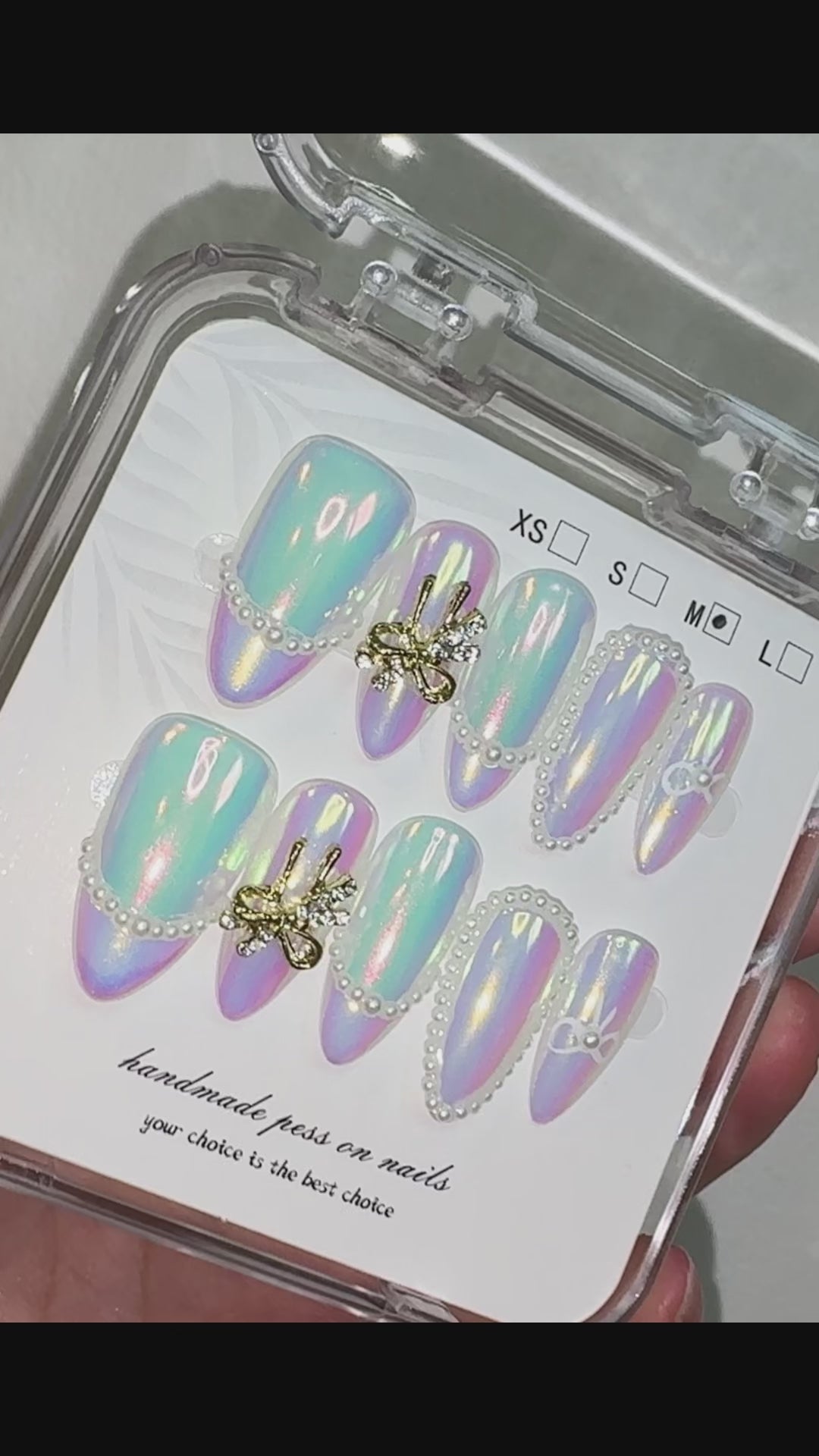 • 1 full set of handcrafted nail tips for both hands